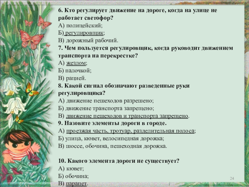 Слайд 246. Кто регулирует движение на дороге, когда на улице не работает