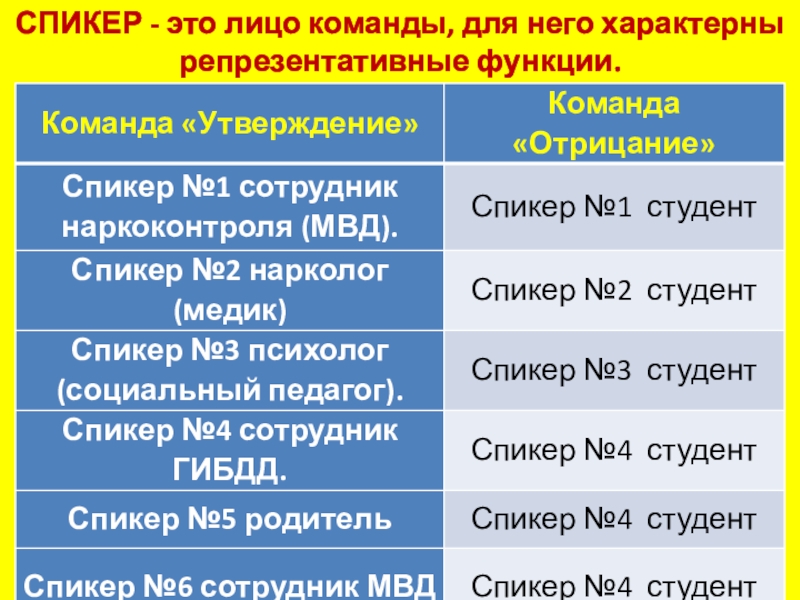 Слайд 13СПИКЕР - это лицо команды, для него характерны репрезентативные функции.