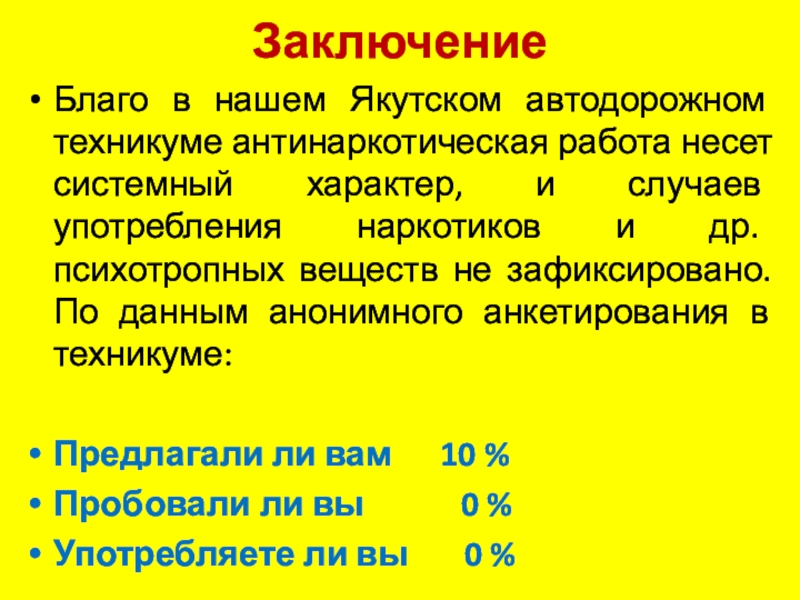 Благо в нашем Якутском автодорожном техникуме антинаркотическая работа несет системный