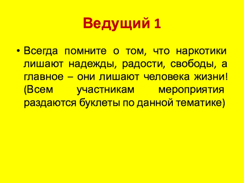 а главное – они лишают человека жизни! (Всем участникам мероприятия раздаются буклеты по данной тематике)