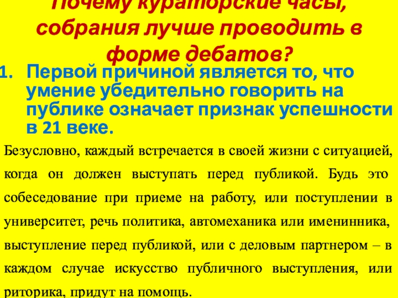Почему кураторские часы, собрания лучше проводить в форме дебатов?