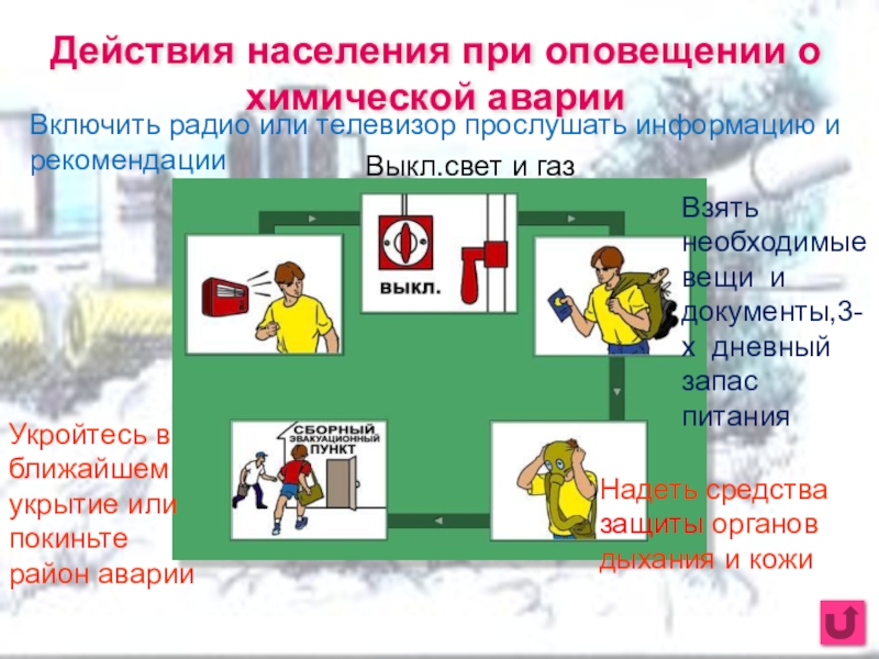 Укройтесь в ближайшем укрытие или покиньте район аварии