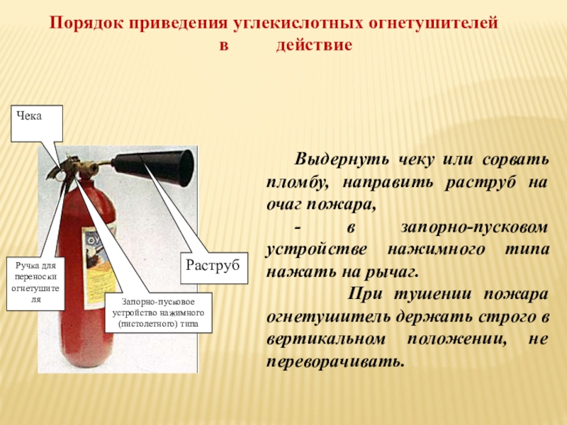 Порядок приведения порошковых огнетушителей в действие