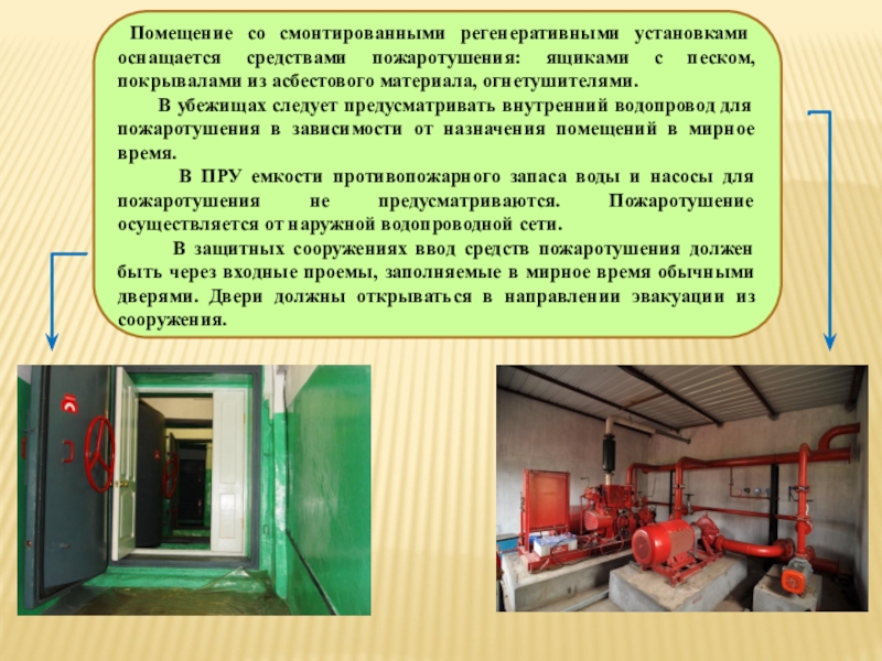 Защитные сооружения оснащаются следующим пожарным имуществом: