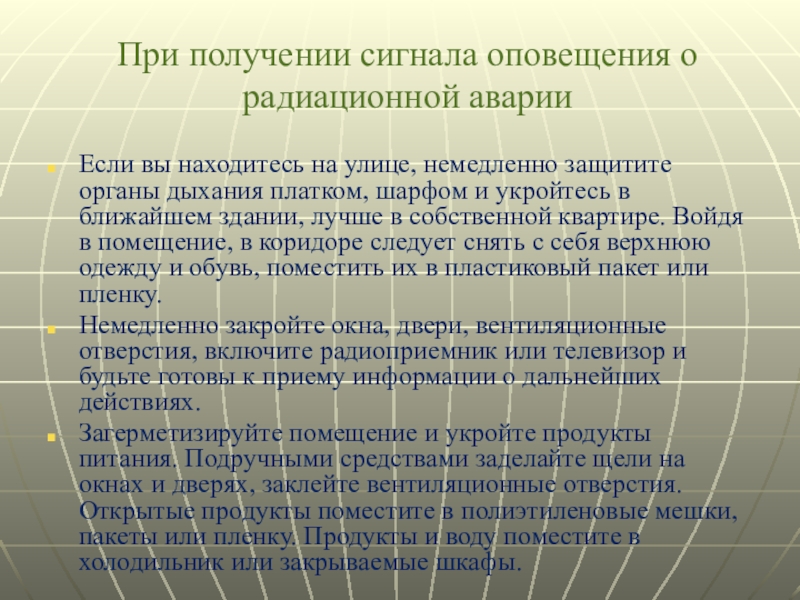 Слайд 12При получении сигнала оповещения о радиационной аварии