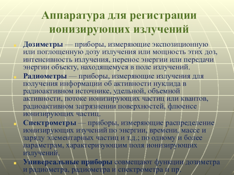 Слайд 10Аппаратура для регистрации ионизирующих излучений
