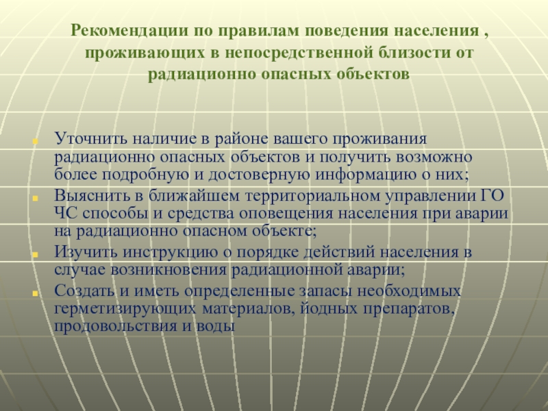 Слайд 11Рекомендации по правилам поведения населения , проживающих в непосредственной близости от