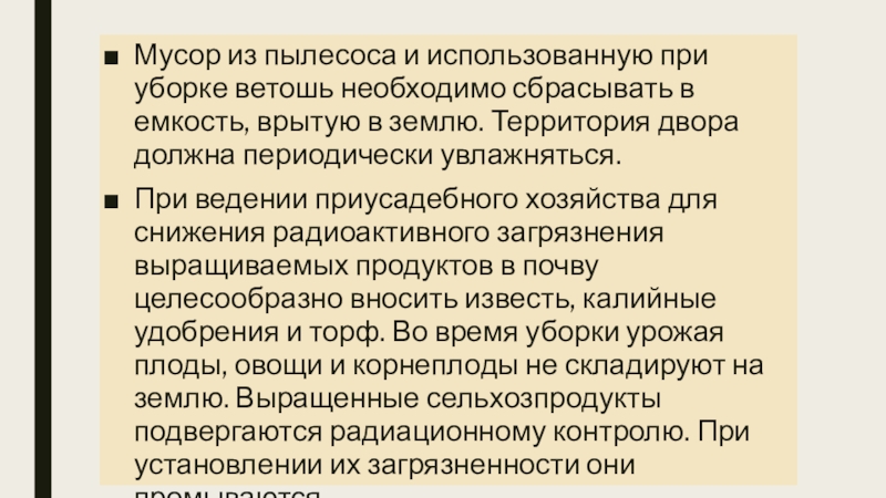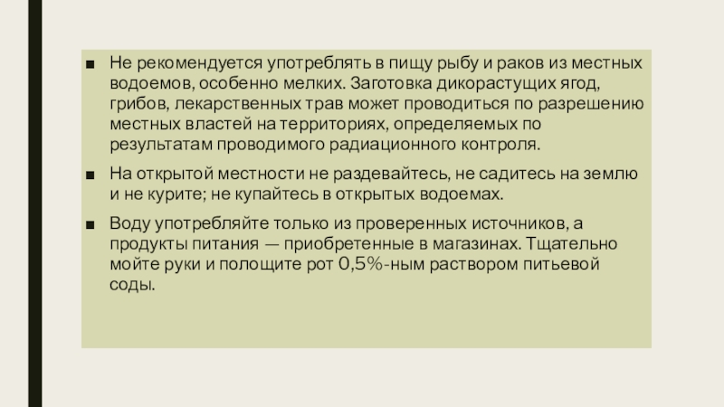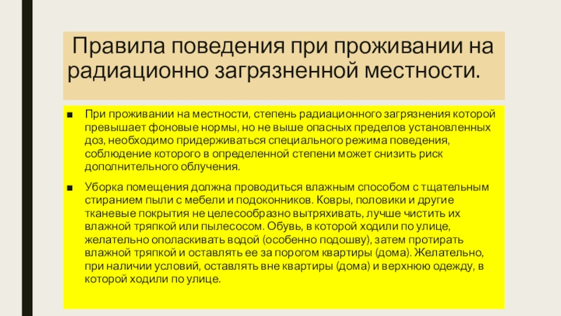 Слайд 19 Правила поведения при проживании на радиационно загрязненной местности.