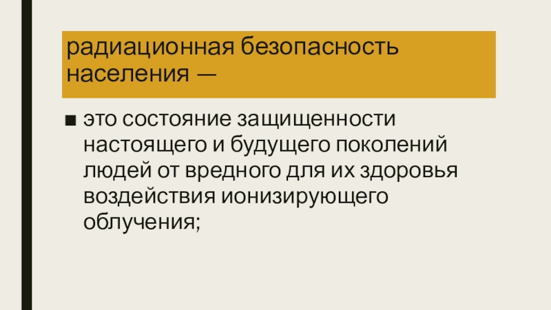 в 1995 г. был принят Федеральный закон «О радиационной безопасности населения», в котором определилась политика государства в области радиационной безопасности населения в целях охраны его здоровья. В законе определены основные понятия, имеющие отношение к радиационной безопасности, которые необходимо знать, так как они касаются личной безопасности каждого. Приведем их: