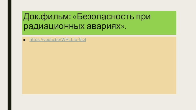Слайд 2Док.фильм: «Безопасность при радиационных авариях».