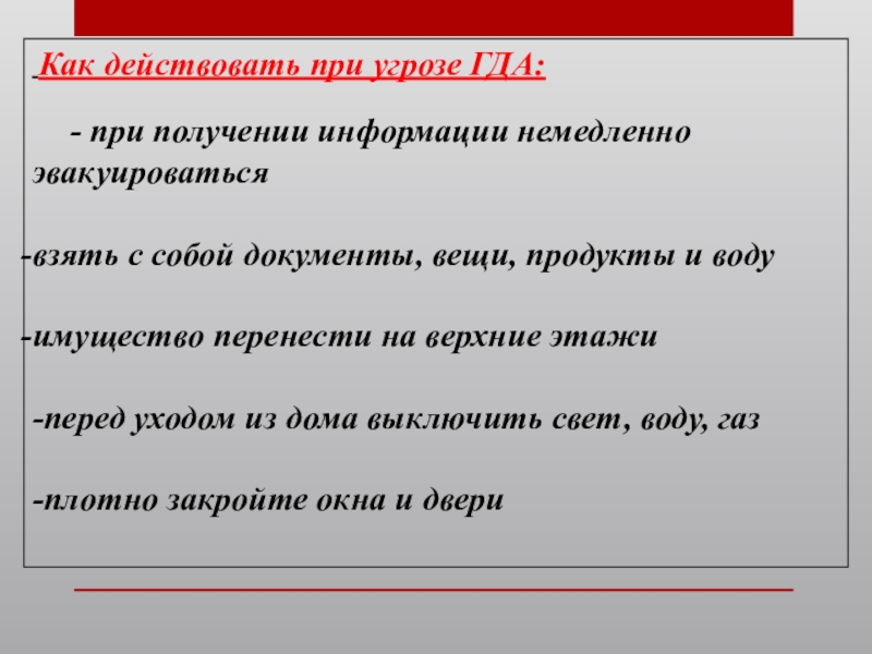 * если вы дома поднимитесь на чердак, взяв с собой всё необходимое, фонарик, отключите электричество, газ, воду