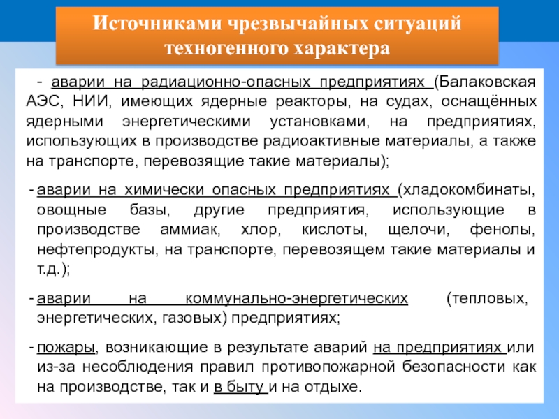 - аварии на радиационно-опасных предприятиях (Балаковская