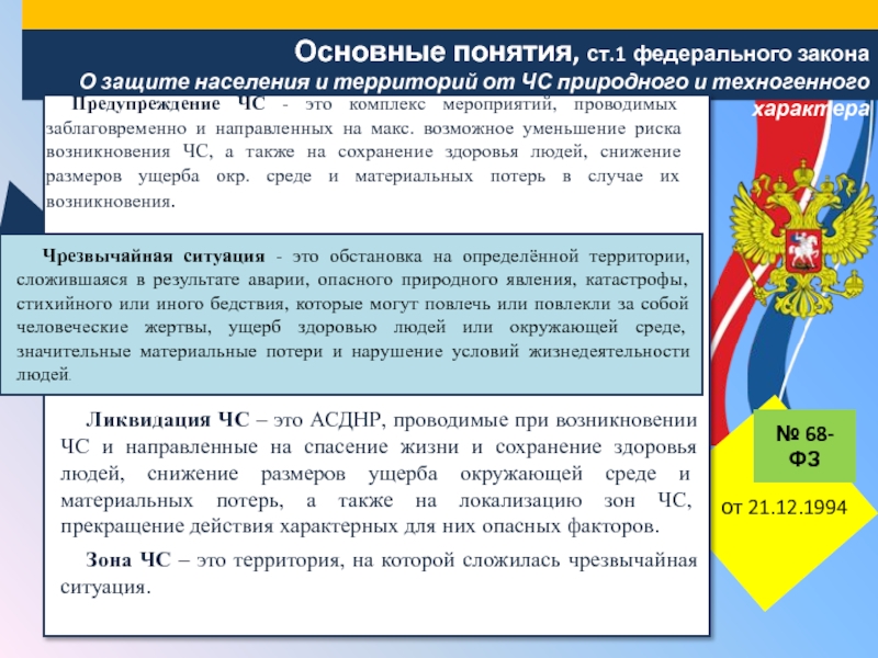 ФЗ РФ от 21.12.1994 № 68-ФЗ «О защите населения и территорий