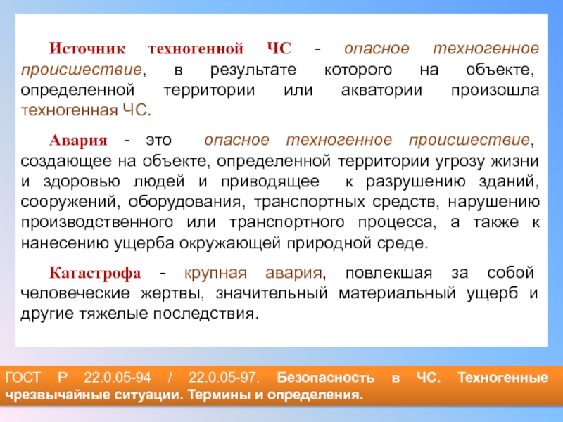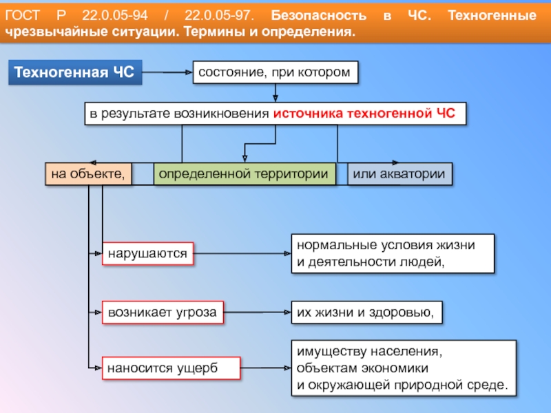 Слайд 9ГОСТ Р 22.0.05-94 / 22.0.05-97. Безопасность в ЧС. Техногенные чрезвычайные ситуации.
