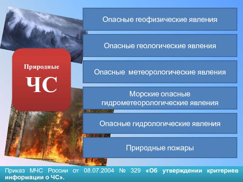 Приказ МЧС России от 08.07.2004 № 329 «Об утверждении критериев информации о ЧС».Опасные геофизические явленияОпасные геологические явленияОпасные