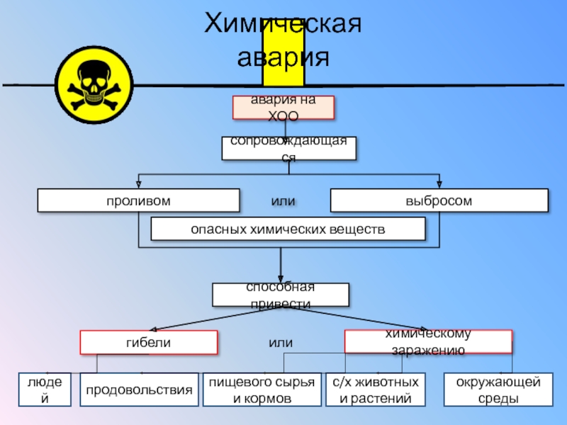 повреждения или разрушения емкостей (технологического оборудования) с аварийно химически опасными веществами возможно распространение этих веществ в концентрациях или количествах, создающих угрозу для жизни и здоровья людей.