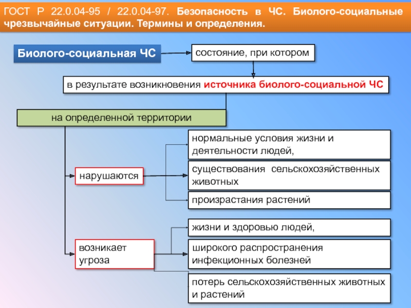 Слайд 19ГОСТ Р 22.0.04-95 / 22.0.04-97. Безопасность в ЧС. Биолого-социальные чрезвычайные ситуации.