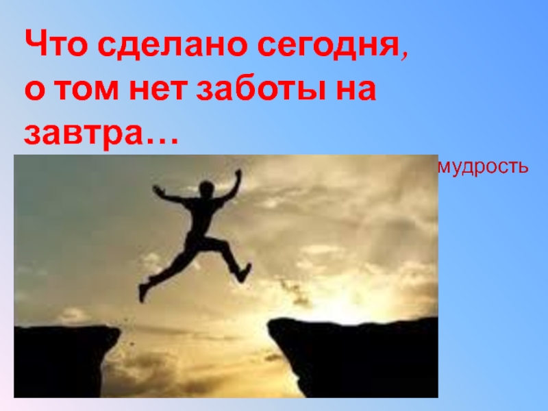 Что сделано сегодня, о том нет заботы на завтра…Народная мудрость