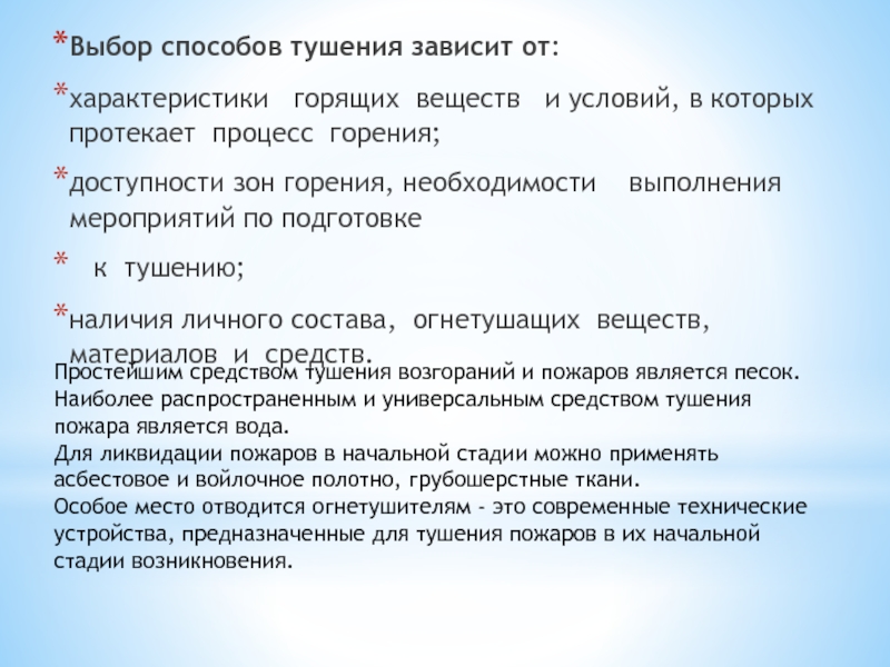 Наиболее распространенным и универсальным средством тушения пожара является вода.