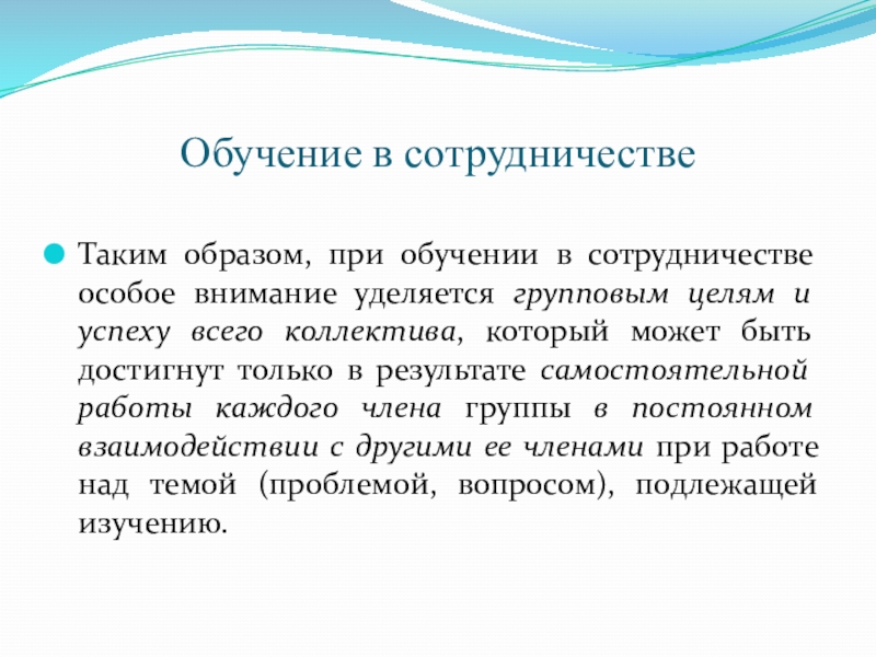 Таким образом, при обучении в сотрудничестве особое внимание уделяется