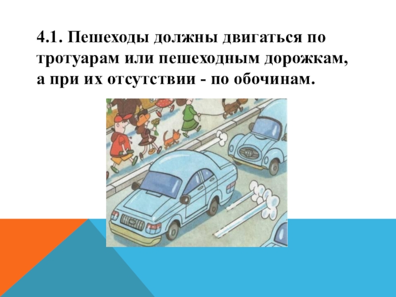 Слайд 34.1. Пешеходы должны двигаться по тротуарам или пешеходным дорожкам, а при