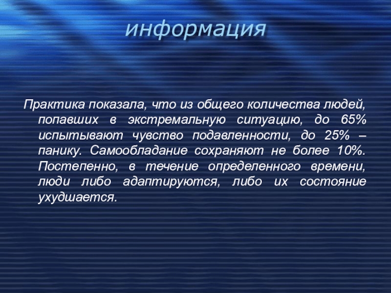 Практика показала, что из общего количества людей, попавших в экстремальную ситуацию,