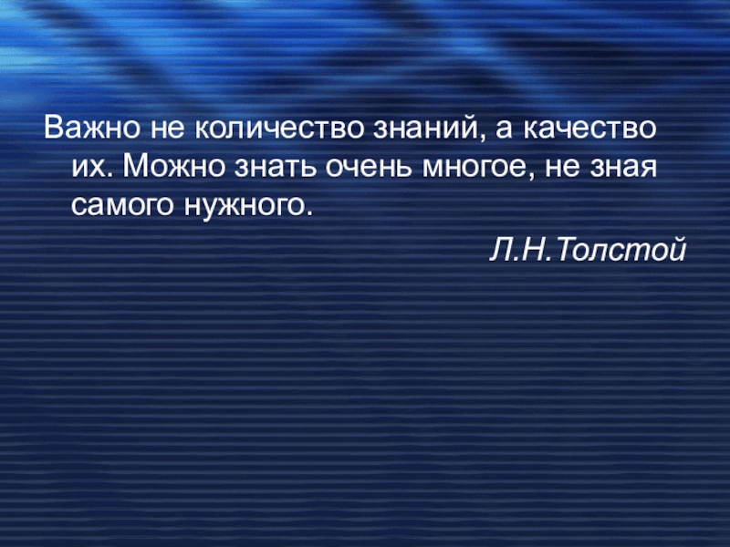 Слайд 2Важно не количество знаний, а качество их. Можно знать очень многое,