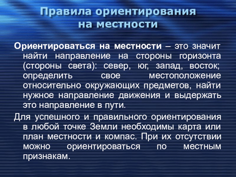 Слайд 1Правила ориентирования на местности