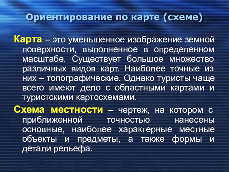 Слайд 9Ориентирование по карте (схеме)