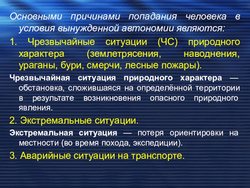 Слайд 4Основными причинами попадания человека в условия вынужденной автономии являются: