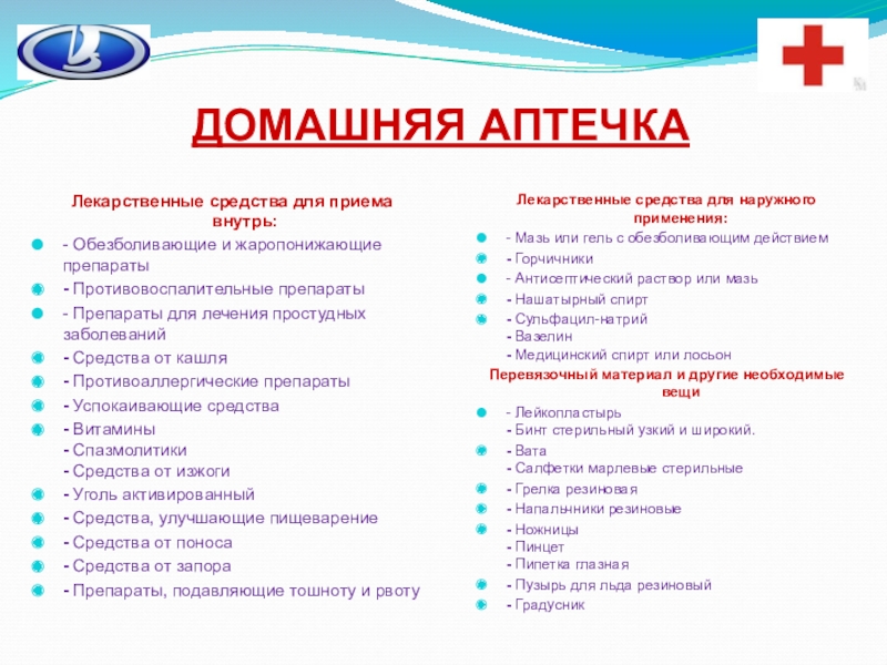 СОСТАВ ДОМАШНЕЙ МЕДИЦИНСКОЙ АПТЕЧКИ