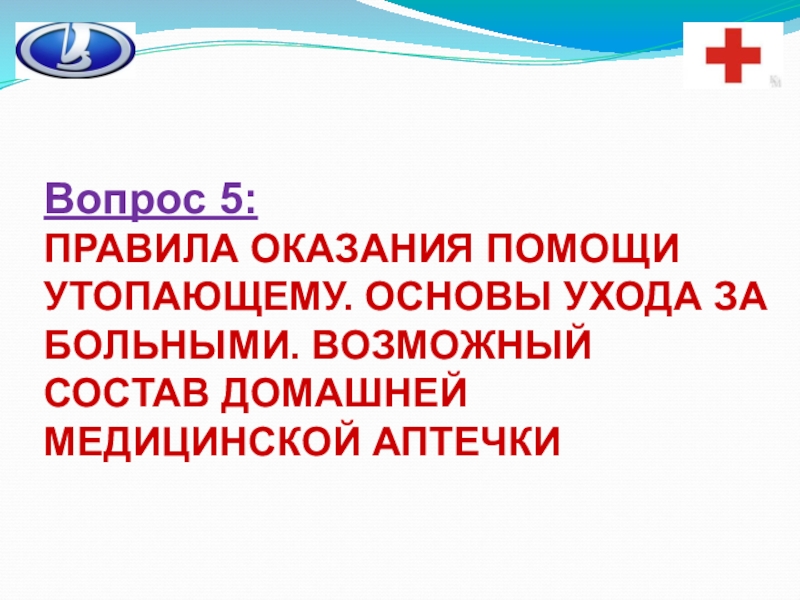 5.Правила оказания помощи утопающему. Основы ухода за больными. Возможный состав домашней медицинской аптечки.