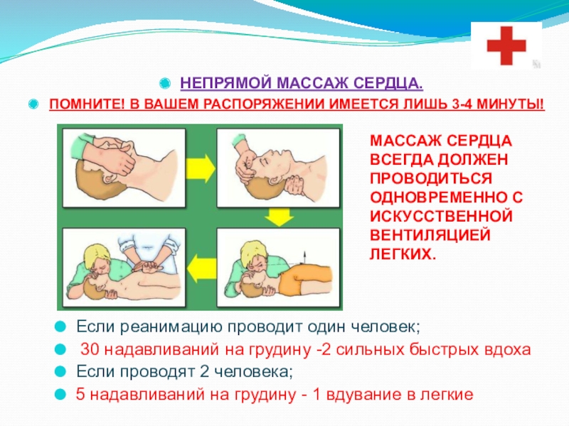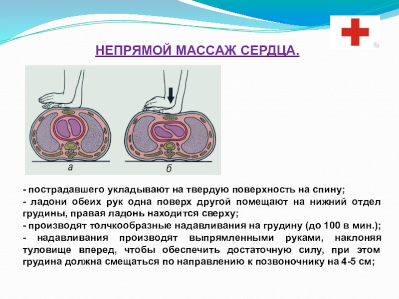 Слайд 6НЕПРЯМОЙ МАССАЖ СЕРДЦА.