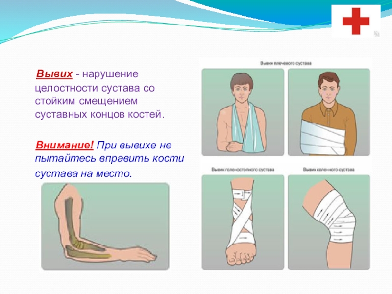 Внимание! При вывихе не пытайтесь вправить кости сустава на место.