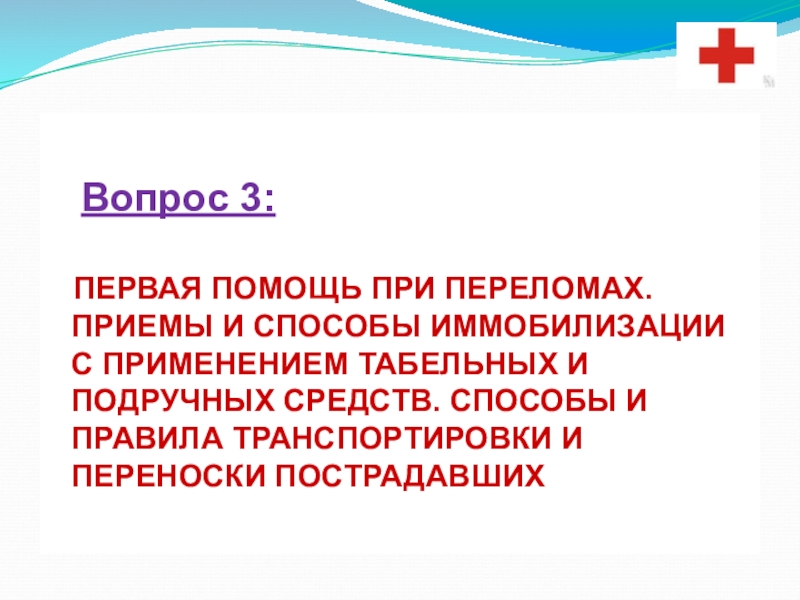 И СПОСОБЫ ИММОБИЛИЗАЦИИ С ПРИМЕНЕНИЕМ ТАБЕЛЬНЫХ И ПОДРУЧНЫХ СРЕДСТВ. СПОСОБЫ И ПРАВИЛА ТРАНСПОРТИРОВКИ И ПЕРЕНОСКИ ПОСТРАДАВШИХ