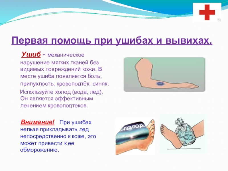 Внимание! При ушибах нельзя прикладывать лед непосредственно к коже, это может привести к ее обморожению.