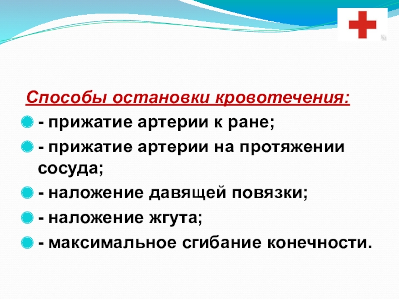 ПЕРВАЯ ПОМОЩЬ ПРИ КРОВОТЕЧЕНИЯХ И РАНЕНИЯХ. СПОСОБЫ ОСТАНОВКИ КРОВОТЕЧЕНИЯ ВИДЫ