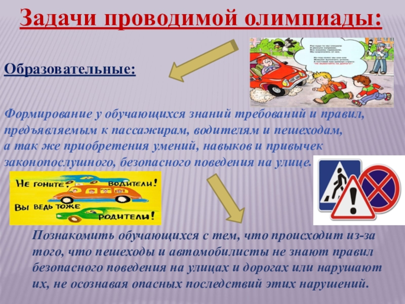 Познакомить обучающихся с тем, что происходит из-за того, что пешеходы и автомобилисты не знают правил