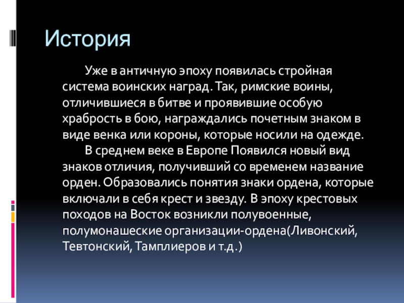 Уже в античную эпоху появилась стройная система воинских наград. Так, римские