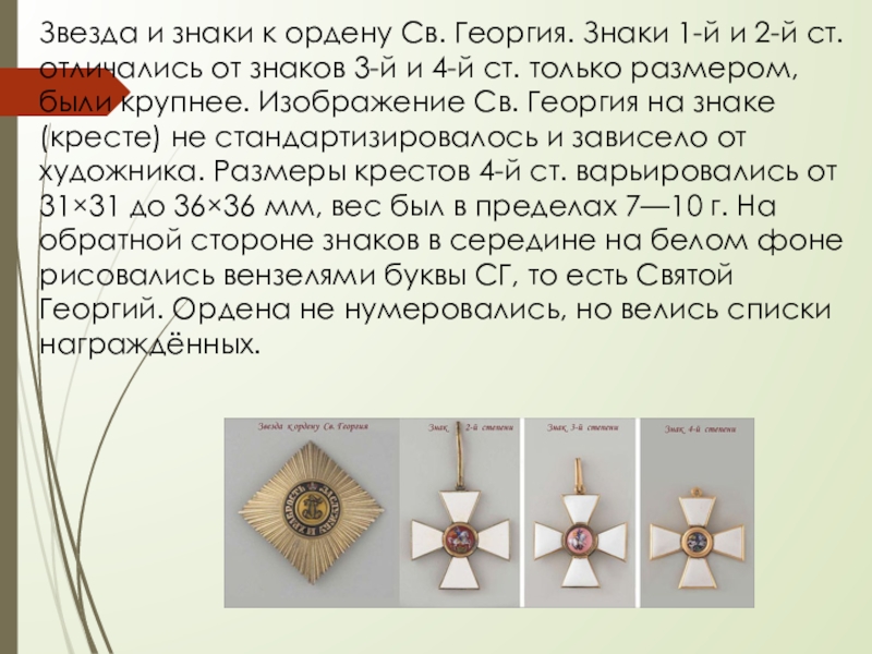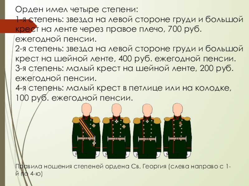 Правила ношения степеней ордена Св. Георгия (слева направо с 1-й по 4-ю)