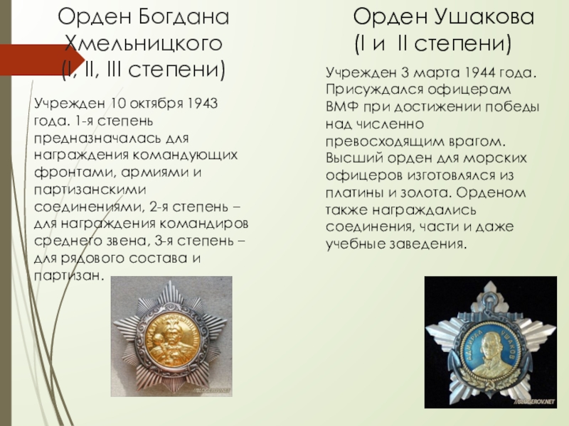 Присуждался офицерам ВМФ при достижении победы над численно превосходящим врагом. Высший орден для морских офицеров изготовлялся из платины и золота. Орденом также награждались соединения, части и даже учебные заведения.