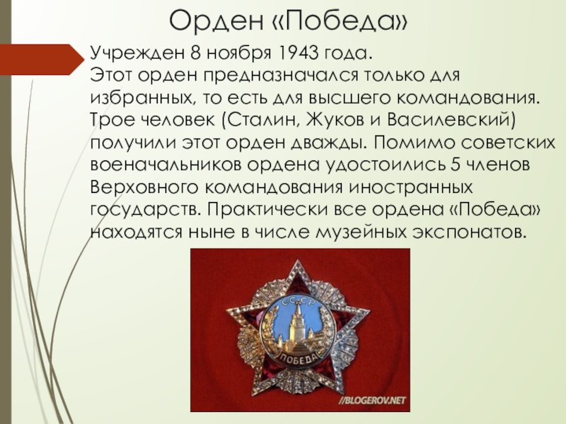 Предназначался командирам (преимущественно в званиях от лейтенанта до майора) дивизий, батальонов и других воинских подразделений за умелое командование и индивидуальную отвагу и мужество. Иногда его получали целые части и подразделения.