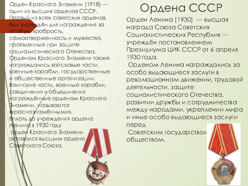 Орден Ленина (1930) — высшая награда Союза Советских Социалистических Республик — учреждён постановлением Президиума ЦИК СССР от 6 апреля 1930 года.