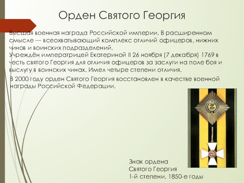 В 2000 году орден Святого Георгия восстановлен в качестве военной награды Российской Федерации.