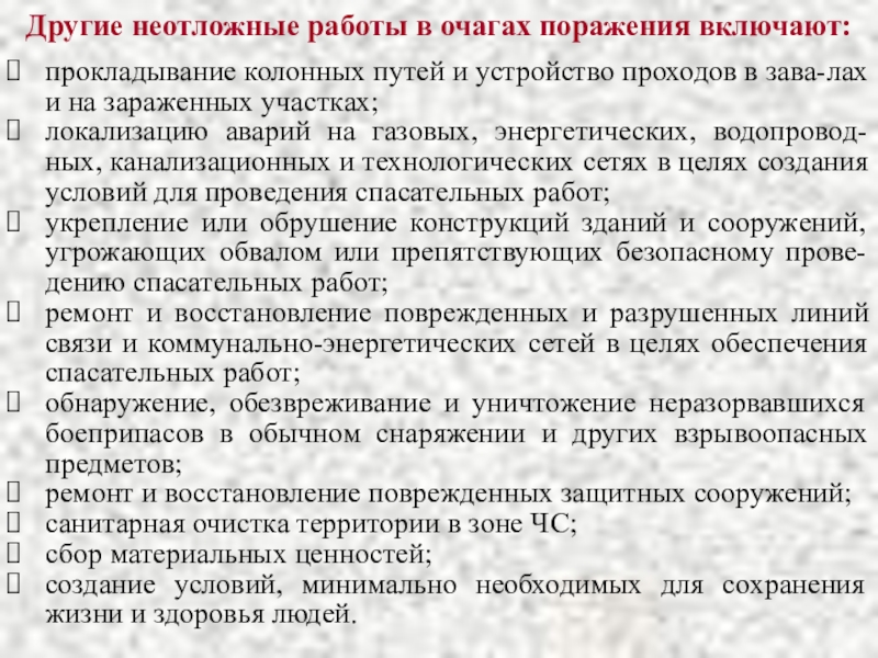 предотвращение дальнейших разрушений и потерь, вызван-ных вторичными поражающими факторами;