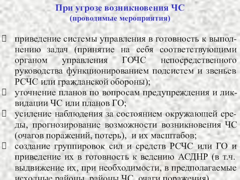 После вывода основной части сил РСЧС в зоне ЧС остаются те формирования, которые выполняют специфические для них задачи.