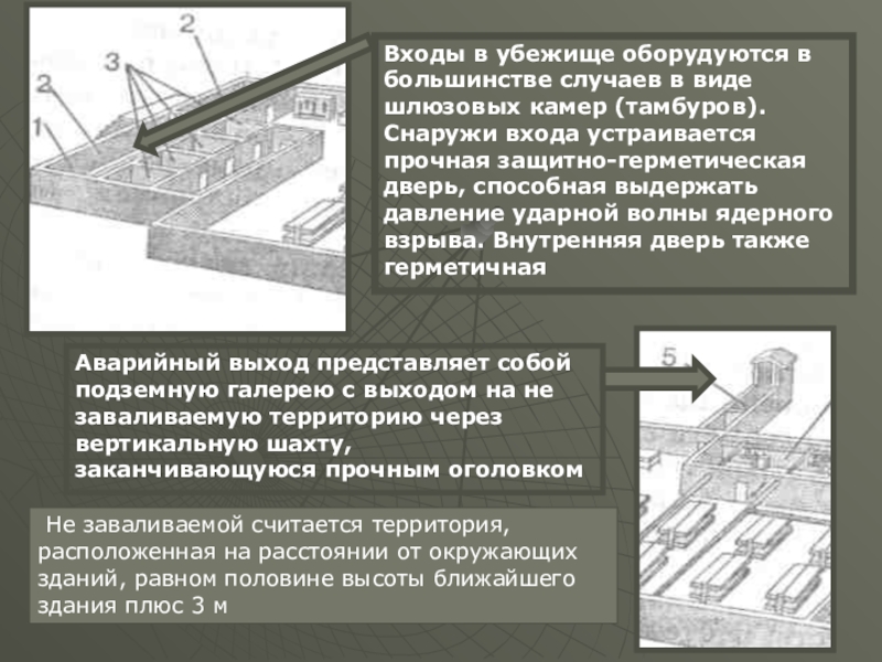 Не заваливаемой считается территория, расположенная на расстоянии от окружающих зданий, равном половине высоты ближайшего здания плюс 3 м