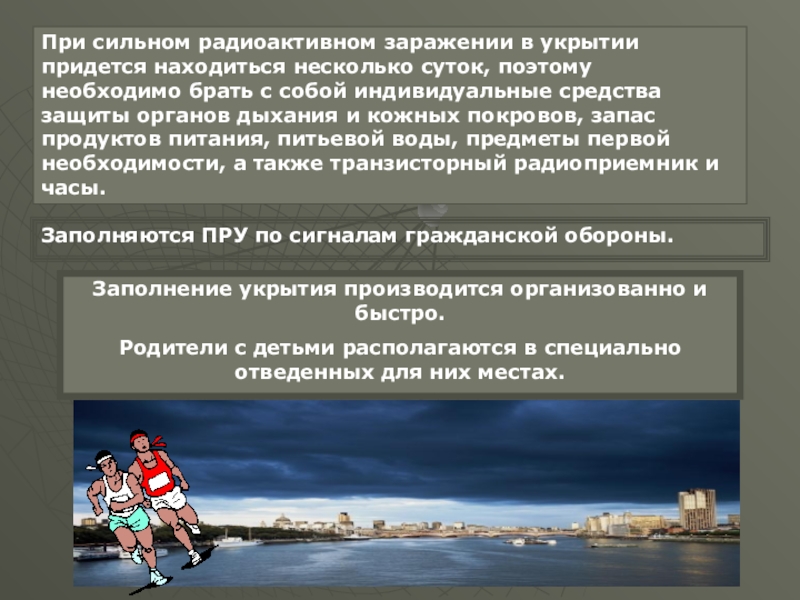 В убежище (укрытие) люди приходят со средствами индивидуальной защиты, продуктами питания и личными документами