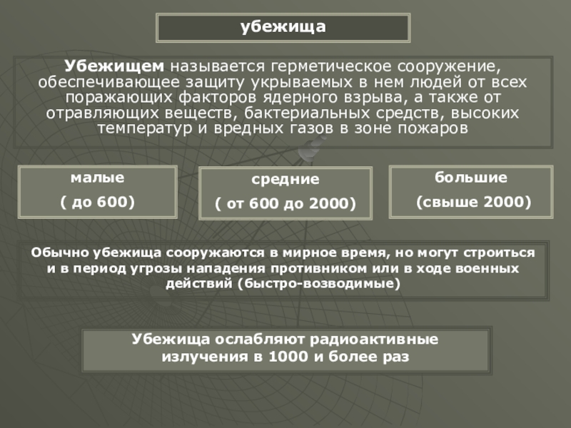Убежища ослабляют радиоактивные излучения в 1000 и более раз
