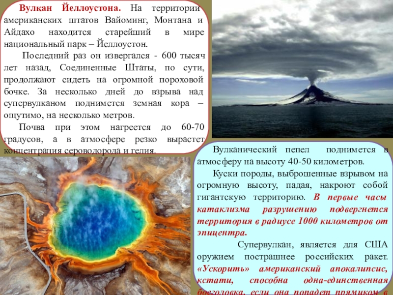 Супервулкан, является для США оружием пострашнее российских ракет. «Ускорить» американский апокалипсис, кстати, способна одна-единственная боеголовка, если она попадет прямиком в эпицентр.